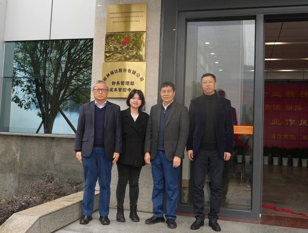 在全體與會人員的熱烈掌聲中,黎福超董事長與其他領導一同為升級后的辦公樓揭牌,現場氣氛隆重而熱烈。揭牌儀式結束后,參會人員共同參觀了裝修一新的辦公區域。